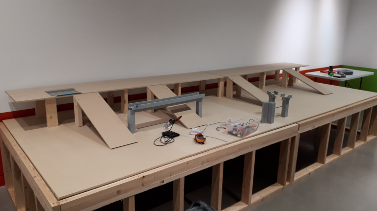 Every giant LEGO display starts with a good foundation. Why cheat and use plywood you might ask? Well, in order to set up all the cars and mini figures, we had to be able to walk down the streets during set up.